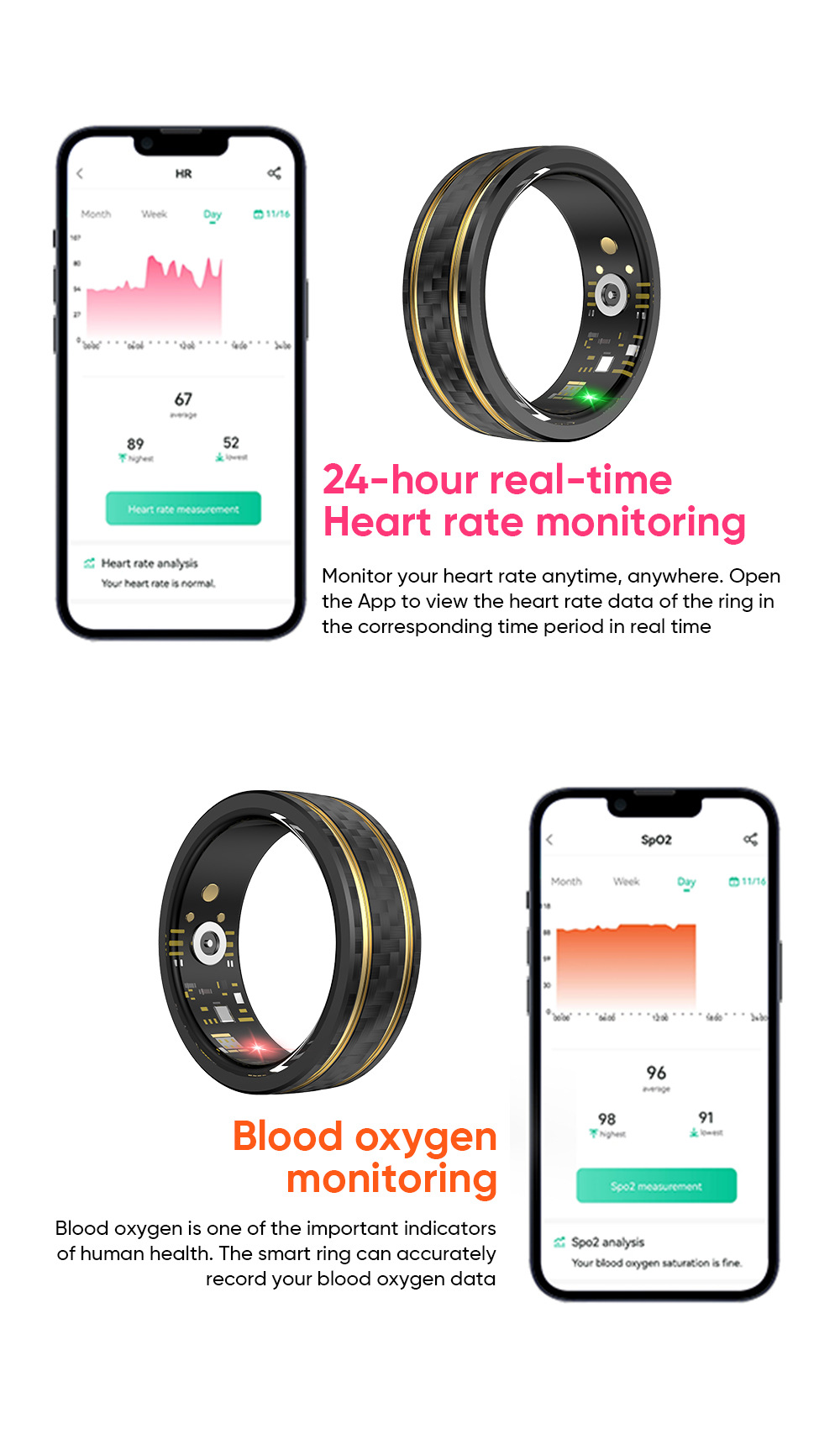 24-Hour Instruction: Provides constant monitoring for better health insights.