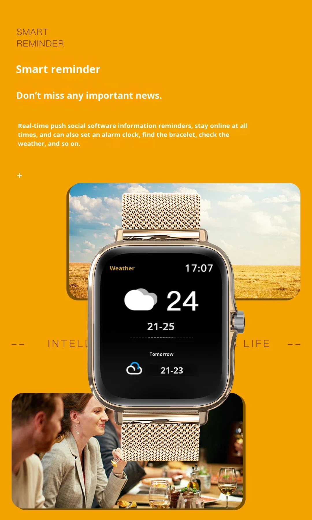 feature | Step Counter,Bluetooth Call,Smart Reminder,Remote Control Selfie |