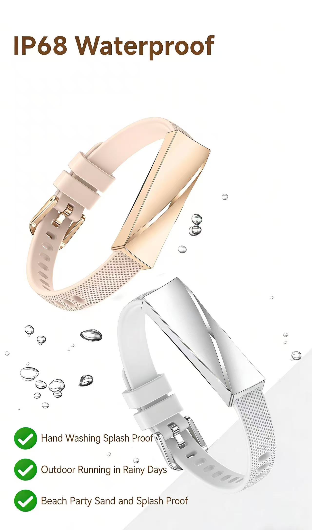 Waterproof: Rated for living water resistance, suitable for light activities.