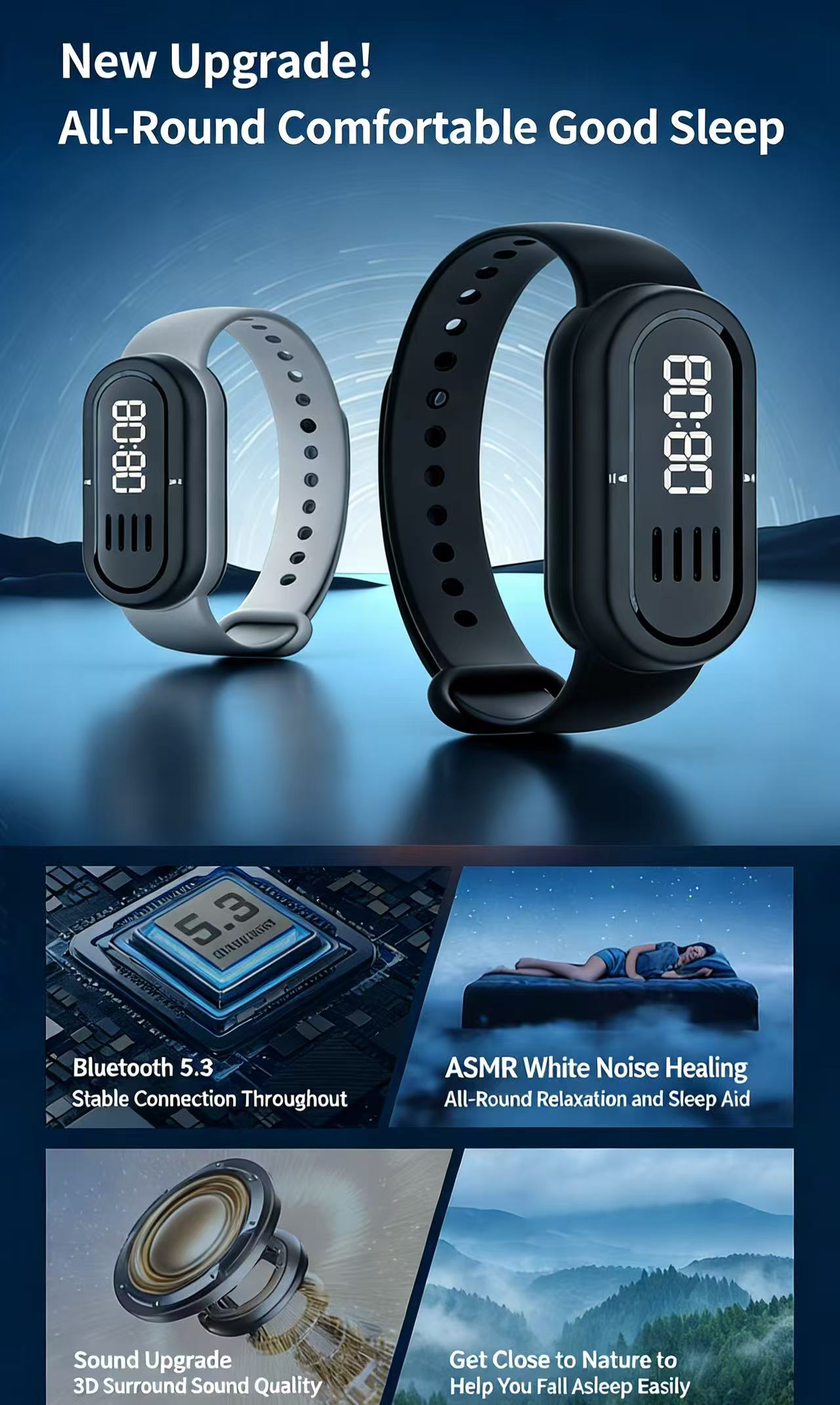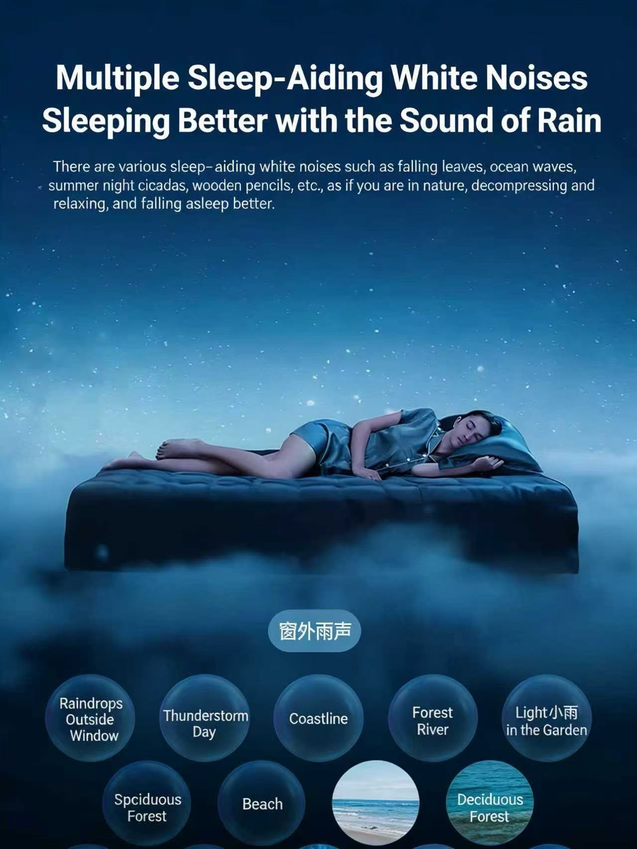 Mini Digital Speaker: Plays 8 natural sounds for sleep and focus.
