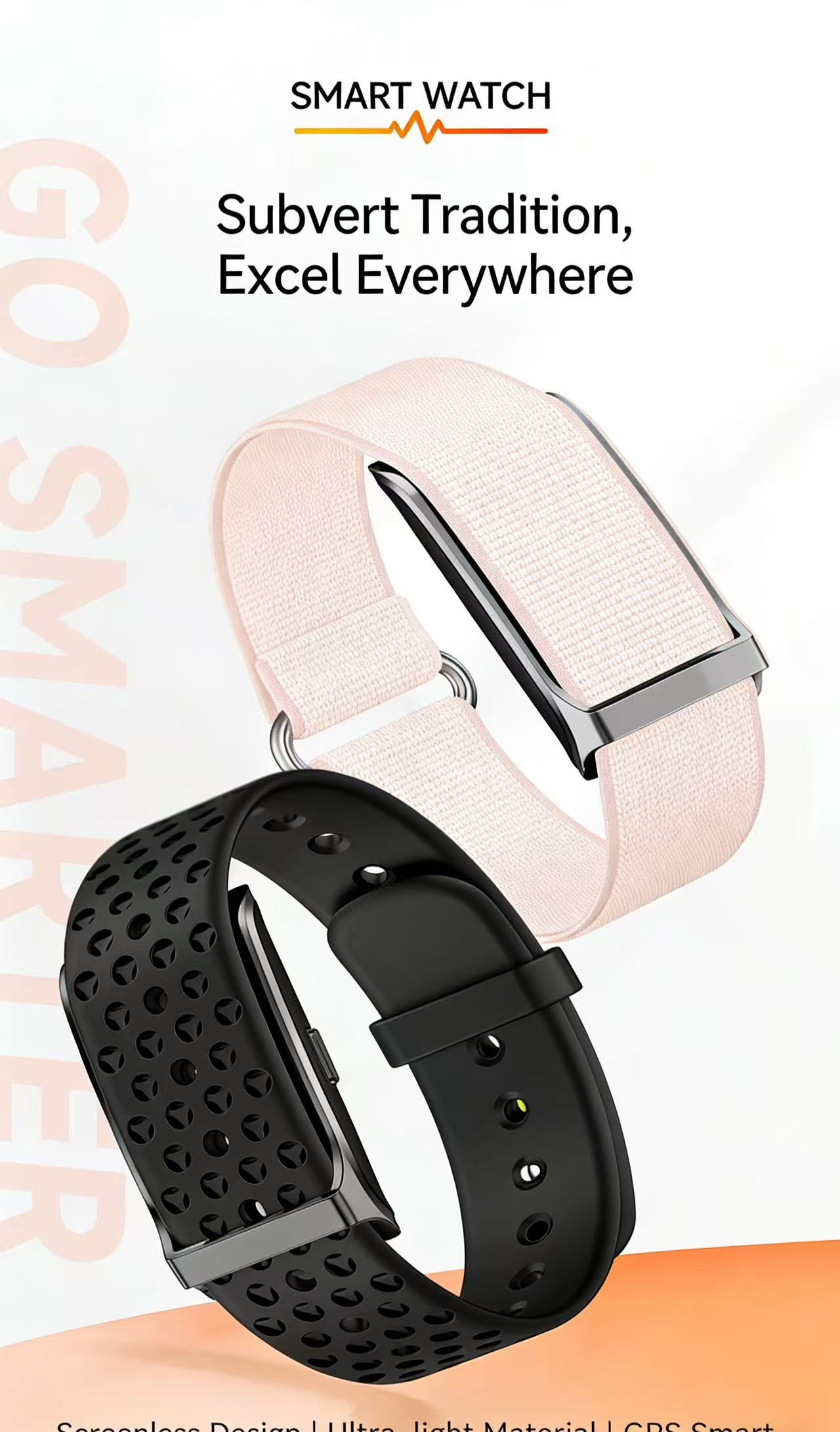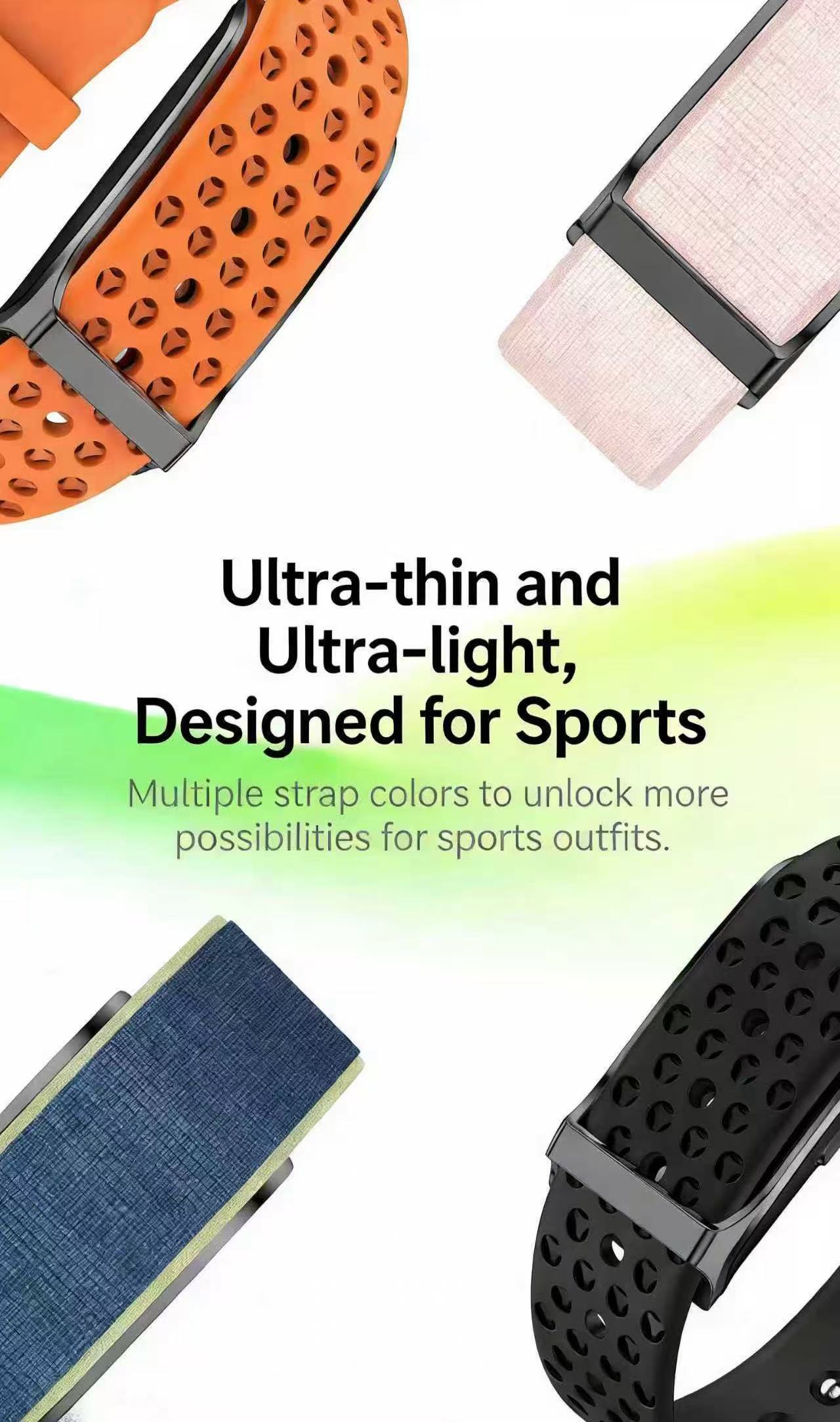 Screenless Design: Modern look without traditional screen for a sleek fitness experience.