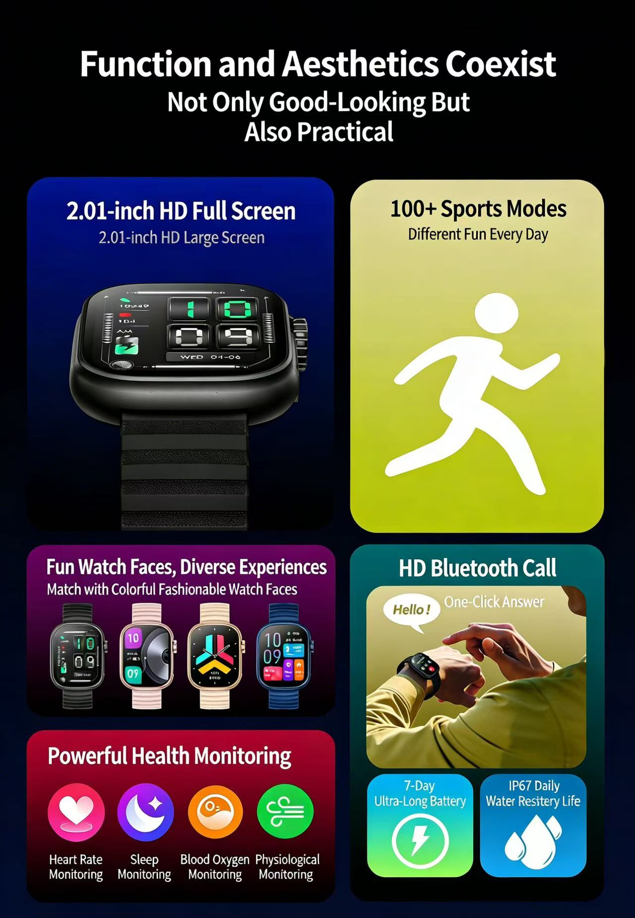 IP67 Water Resistance: Suitable for swimming and other water activities.